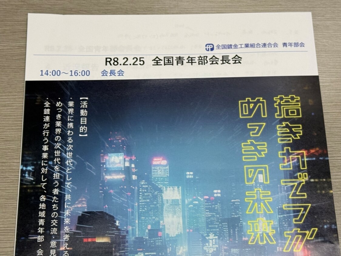 2月25日に東京都港区の機械振興会館で開催された、全国鍍金工業組合連合会の「全国青年部会長会」に出席してきました。